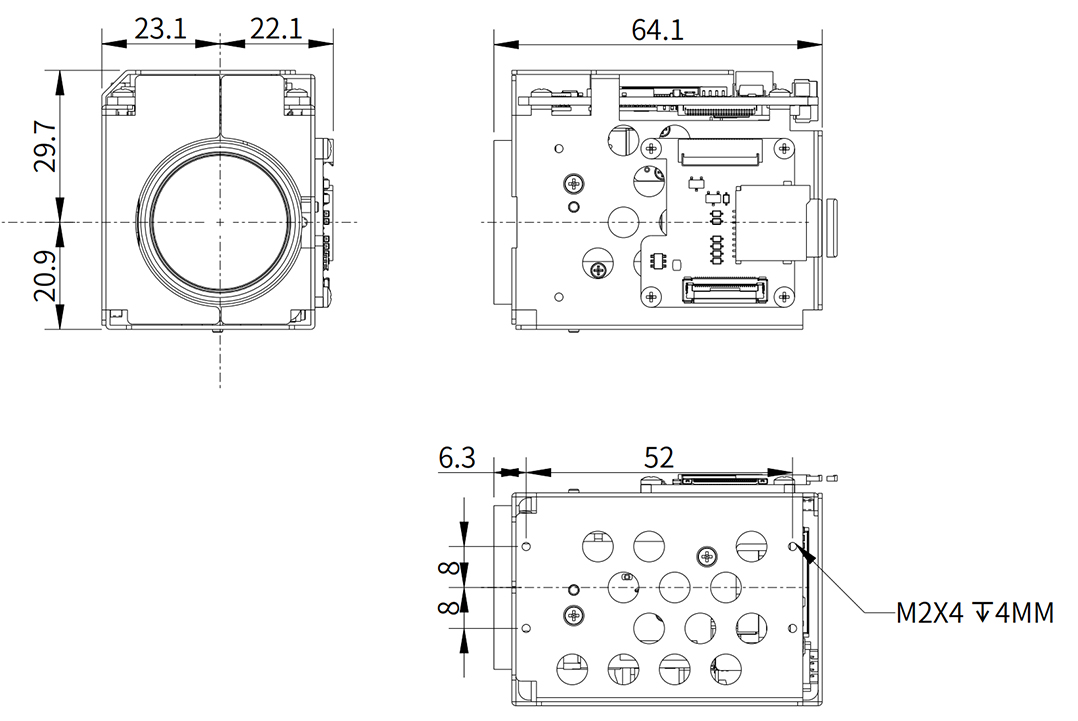 H: 60.2°~6.6°, V: 36.1°~3.7°, D: 67.3°~7.6° |